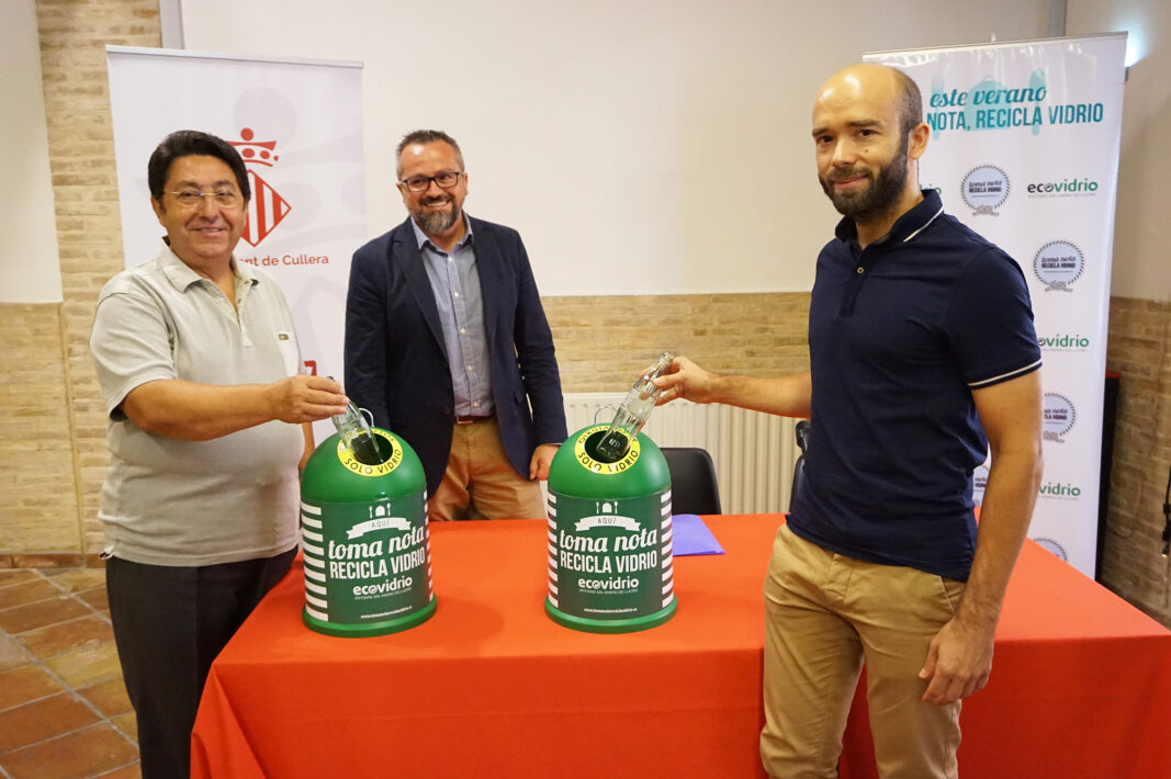 La localitat inclou el Medusa Sunbeach en el pla de reciclatge ‘Pren nota, recicla vidre’ CULLERA. 10-07-17. Cullera ha presentat este matí la campanya estiuenca de reciclatge de vidre juntament amb Ecovidrio i l’Associació d’Empresaris d’Hostaleria i Turisme de Cullera (AEHC). En ella participaran més de 170 establiments cullerencs, el