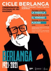 L’Ajuntament d’Alboraia s’uneix a la celebració de l’any Berlanga, una iniciativa aprovada per les Corts Valencianes i declarada pel Consell de la Generalitat Valenciana per a commemorar el centenari del naixement de Luis García Berlanga. Ho fa amb un cicle de tres pel·lícules del director i guionista valencià, que emetrà en aquest últim trimestre de l’any la regidoria de Cultura que lidera Manuel Andreu.