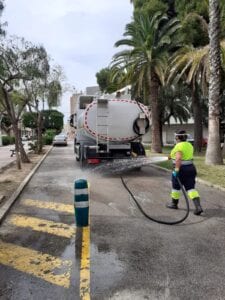 «Des del 18 de març portem realitzant la desinfecció dels llocs més transitats del municipi, com a parcs i jardins, zones de joc, comerços locals, centre de salut, etc. Cada dia, des de les cinc i mitja de la matinada fins a les 14.00 hores, excepte els diumenges, es procedeix a la neteja i desinfecció d’aquests espais. I, a més, els dijous i els divendres també es realitza a les vies públiques», explica l’alcaldessa Eva Zamora.