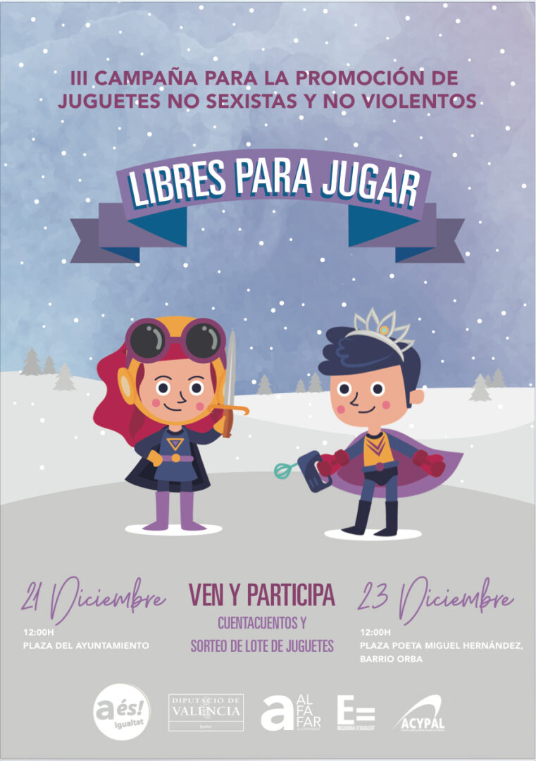 L’Ajuntament d’Alfafar, a través de la seua regidoria d’Igualtat, ha posat en marxa la tercera edició de la campanya per a fomentar l’ús de joguets no sexistes i no violents entre la població més jove del municipi.