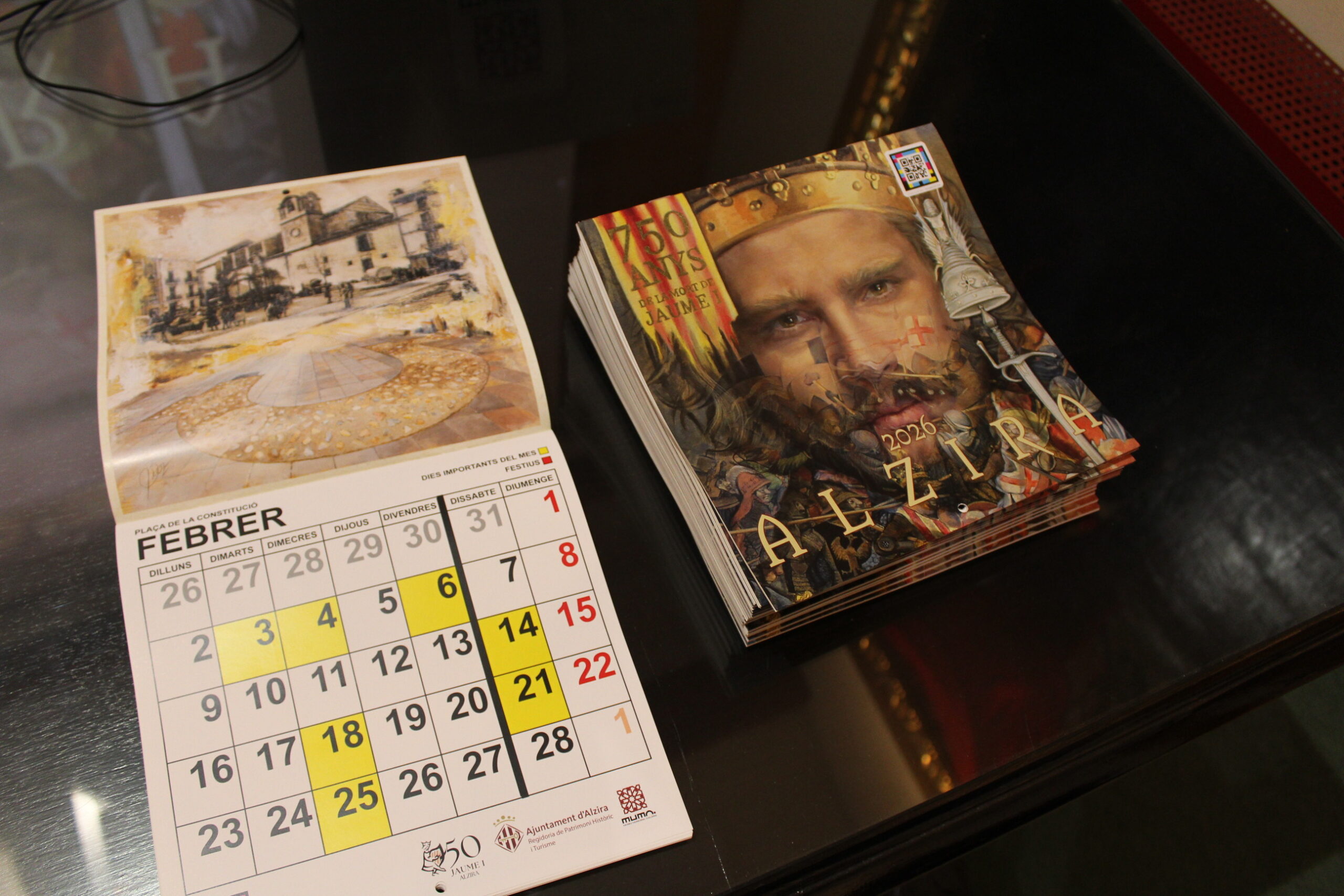 - Codis Navilens en cada pàgina mensual, que permeten accedir a informació ampliada en format àudio, amb descripció d’imatges, dates destacades i cites relacionades amb Jaume I, enregistrades per Alzira Ràdio.