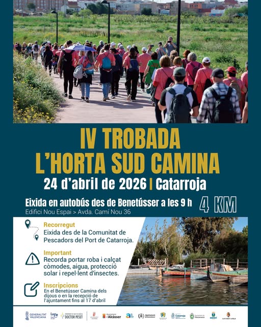 Les inscripcions es podran realitzar fins al 17 d’abril, tant en les trobades dels dijous del programa Benetússer Camina com en la recepció de l’Ajuntament. Esta iniciativa reforça el compromís municipal amb la promoció de la salut i l’activitat física en un entorn natural i accessible.