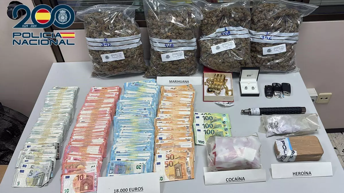 La Policia Nacional ha detingut 12 persones, sis dones i sis homes, i ha decomissat 800 grams d’heroïna, 250 grams de cocaïna, gairebé 7 kg de marihuana, diners en efectiu i armes.