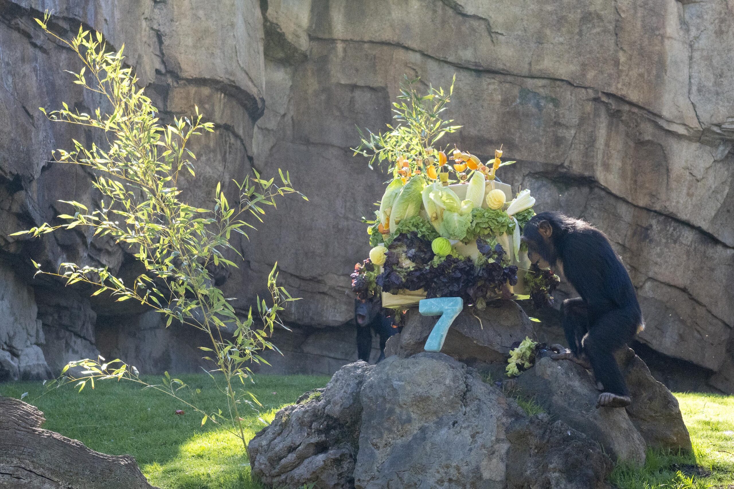 Per a celebrar el seu seté aniversari, l’equip de BIOPARC València ha organitzat una “festa” especial amb una tarta i regals, com a part de les accions d’enriquiment ambiental. El recinte, que recrea la selva, es va decorar amb elements vistosos i una tarta elaborada amb verdures i fruites, sent Djibril el primer a tastar-la. La resta del grup, especialment les cries, van gaudir del moment, jugant i compartint aliments com taronja, pera, poma i plàtan.
