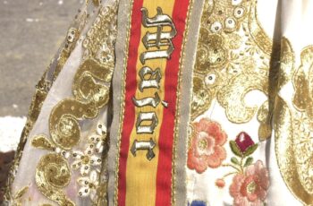 Andrea Adelantado i Sara Magán posen el fermall final a l’Ofrena de les Falles de Torrent