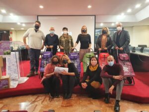 La Unitat de Normalització Lingüística de la Diputació de València presenta a Alzira la campanya de foment del valencià en el comerç local ‘Som de barri, de ciutat, de botiga i de mercat’ amb carros de la compra i bobines de paper d’embolicar i un rap creat per a l’ocasió per Herbanegra