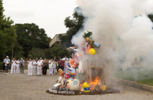 La diputada de Benestar, Pilar Sarrión, i responsables del Gremi d’Artistes Fallers acompanyen a sanitaris i pacients de l’Hospital Psiquiàtric de Bétera en la cremà de la falla de Vicente Domínguez