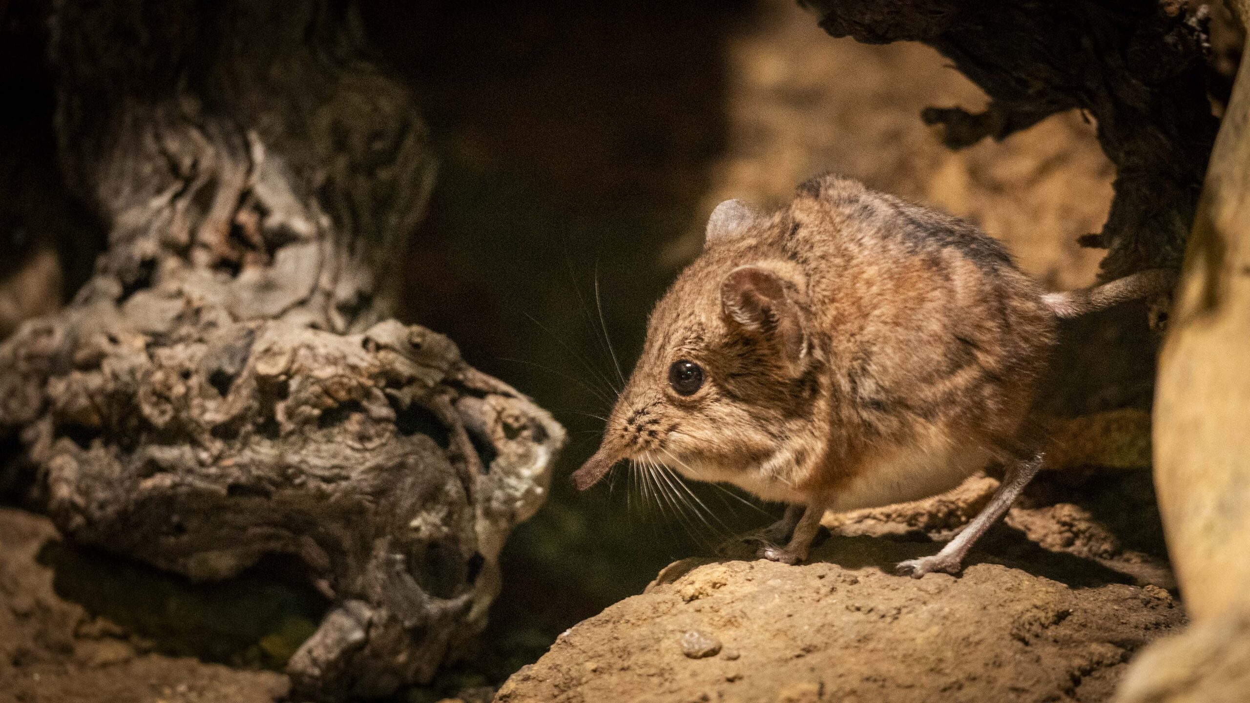 La parella de musaranya elefant, formada per un mascle procedent d’Alemanya i una femella del parc, gaudeix d’un nou espai adaptat que millora el seu benestar. La instal·lació inclou terrarios connectats i elements que afavorixen els seus comportaments naturals, permetent observar la seua gran agilitat.