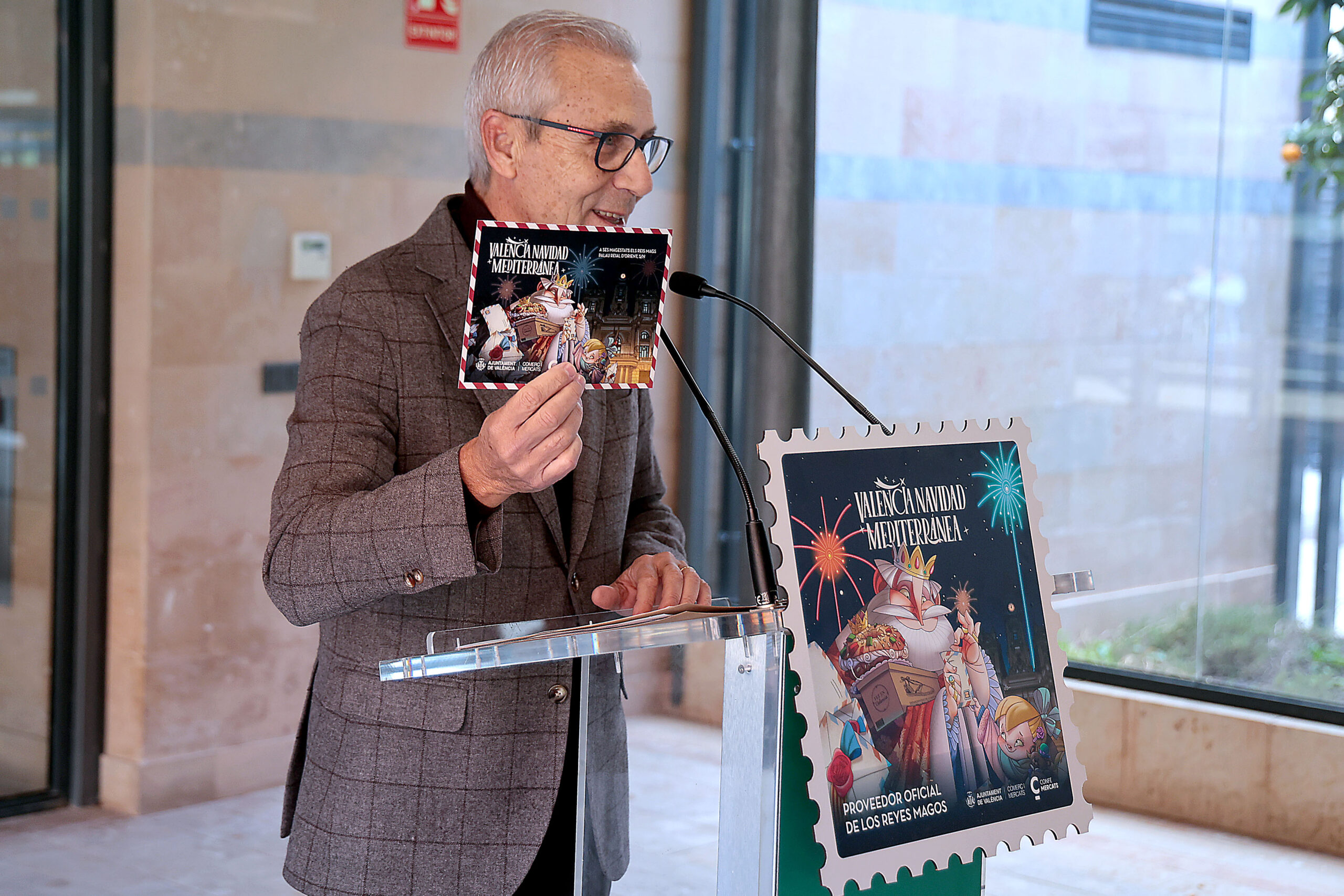 El concejal de Mercados, Santiago Ballester, presenta el cartel de Navidad y la campaña de comercio 2025 del Ayuntamiento de València.