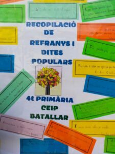 El dijous, 25 de novembre, les classes de 4t de primària, del C.E.I.P. Batallar, van fer una activitat, a peu de carrer, que consistia a deixar una recopilació de refranys i dites populars, conegudes i menys conegudes, pel municipi.