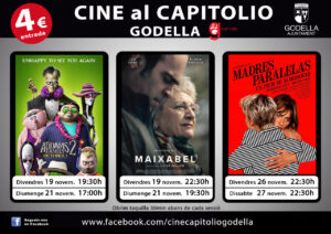 El Teatre Capitolio torna d’esta manera a convertir-se en una gran sala de projecció amb tot l’aforament disponible perquè la ciutadania torne a veure les seues pel·lícules preferides en el propi municipi. La primera cita serà el pròxim 19 de novembre amb la projecció de “La Família Adams 2”, a les 19.30 hores, i “Maixabel”, a les 22.30 hores. Les dos cintes tindran noves passades el diumenge, 21 de novembre, a les 17 i 19.30 hores, respectivament.