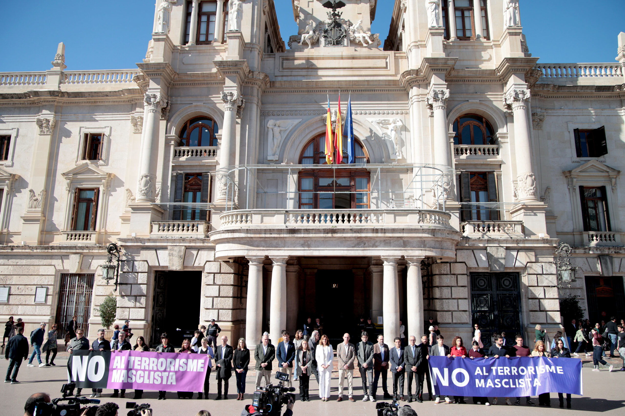 La convocatòria, organitzada per l’Ajuntament de València, ha estat seguida també a les diferents dependències municipals. A l’acte s’hi han sumat funcionaris i funcionàries municipals, així com ciutadans i ciutadanes que s’han acostat al consistori per expressar el seu rebuig davant l’últim cas de violència de gènere ocorregut a la Comunitat Valenciana.